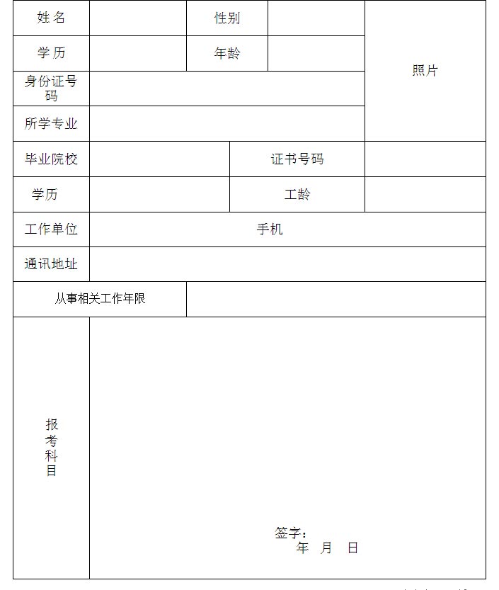 附:全国注册物业管理师培训报名表